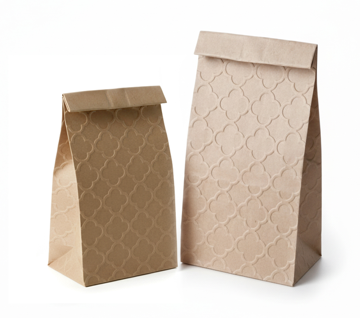 Papiertüten aus weißem Kraftpapier mit eleganter Prägung