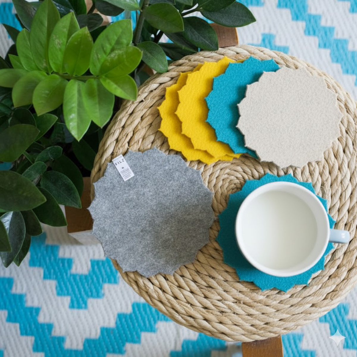 Jeder Untersetzer ist kunstvoll gestaltet und strahlt eine zeitlose Schönheit aus. Ob als Dekoration auf dem Tisch, als Untersetzer für Ihre Getränke oder als Platzmatte für Ihren Esstisch - unsere Filzuntersetzer mit Sonnenblumen Optik sind vielseitig einsetzbar und verleihen Ihrem Zuhause eine elegante Note.