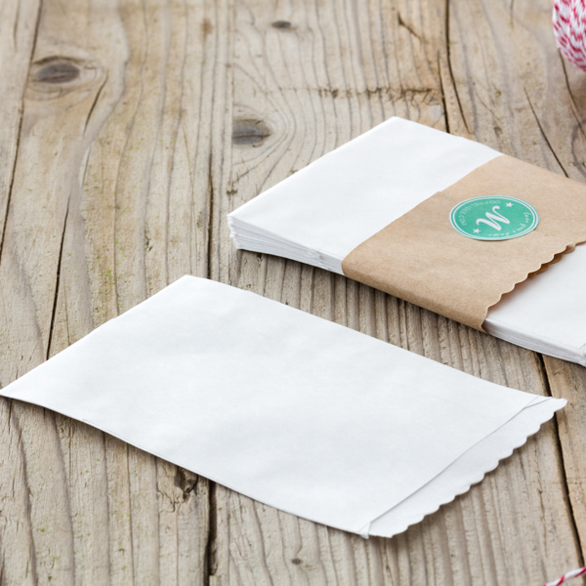 10 Weiße Papiertüten / Flachbeutel "SCALLOP"